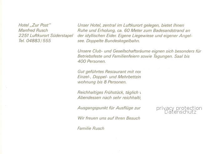 73726198 Suederstapel Hotel Zur Post Teilansichten Innen-Aussen Informationen postalisch nicht gelaufen Werbekarte (keine Postkarte) Erhaltung siehe scans [LiesaD40] KatCode: 11110001059085