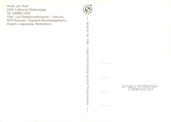 73730588 Suederstapel Hotel Zur Post postalisch nicht gelaufen Erhaltung siehe scans [LiesaD40] KatCode: 11110001059085