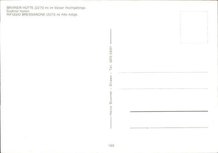 Suedtirol Brixner Huette Valser Hochgebirge postalisch nicht gelaufen Erhaltung siehe scans