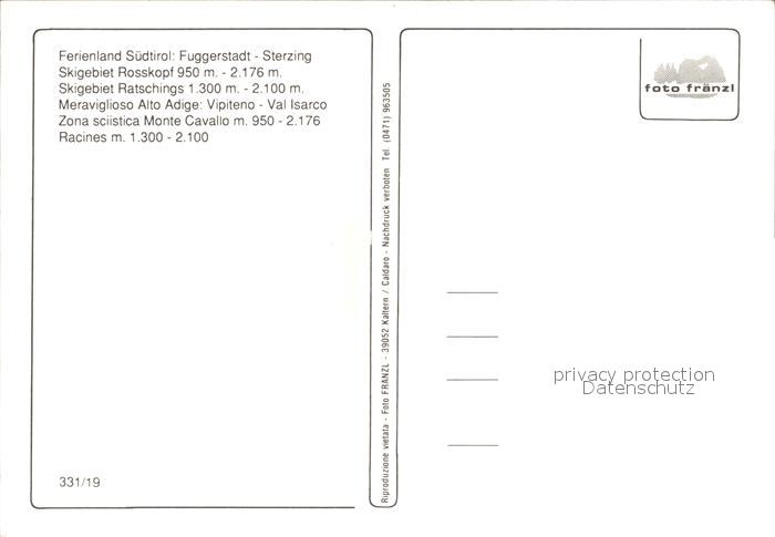 Suedtirol Fuggerstadt Sterzing Skigebiet Rosskopf Ratschings postalisch nicht gelaufen Erhaltung siehe scans