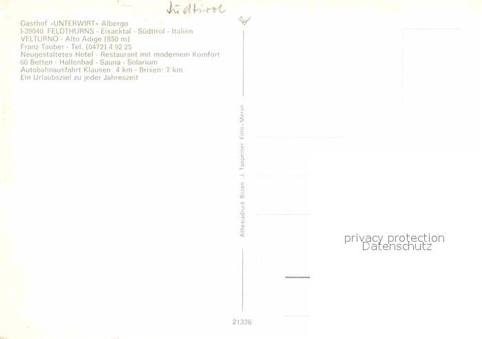 Suedtirol Gasthof Unterwirt Feldthurns postalisch nicht gelaufen Erhaltung siehe scans [LiesaD40]
