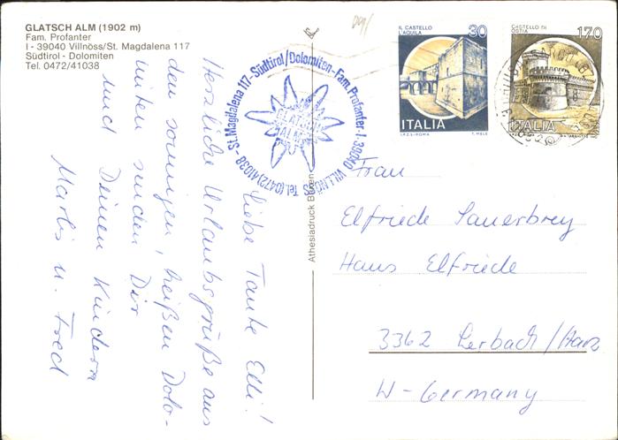 old postcard Suedtirol Glatsch Alm postalisch gelaufen Erhaltung siehe scans