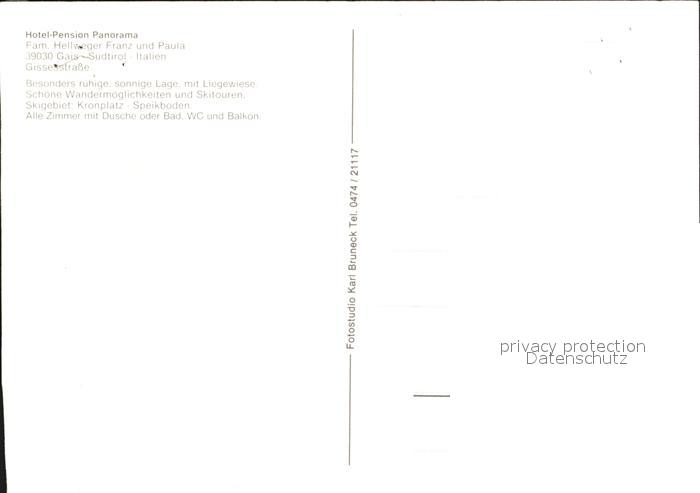 Suedtirol Hotel Pension Panorama Gais postalisch nicht gelaufen Erhaltung siehe scans