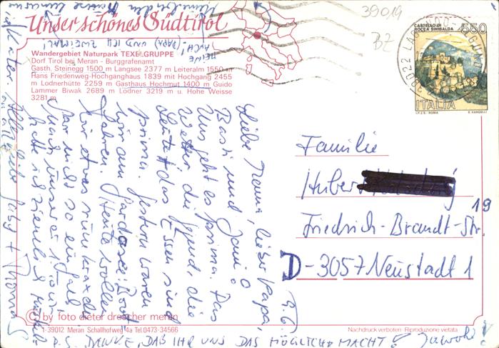 old postcard Suedtirol Texelgruppe postalisch gelaufen Erhaltung siehe scans