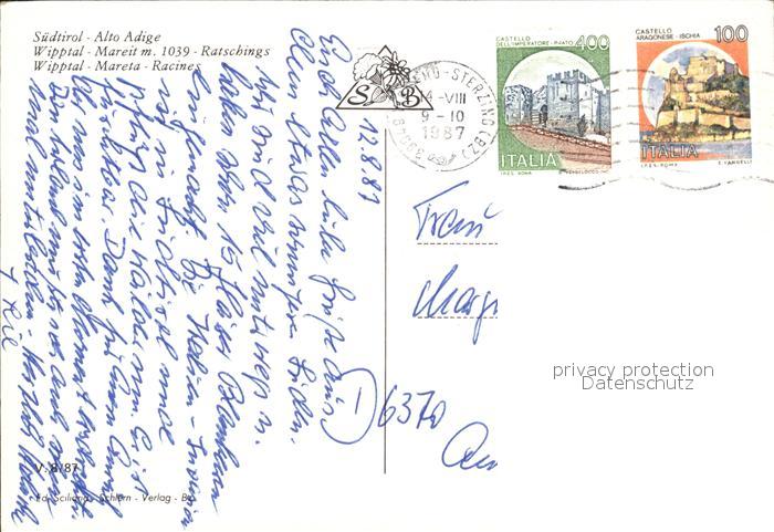 old postcard Suedtirol Wipptal Mareta Racines postalisch gelaufen Erhaltung siehe scans