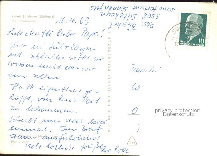 71989738 alte Postkarte Suelzhayn Haus Sonnenfels postalisch gelaufen Erhaltung siehe scans KatCode: 11110016062005