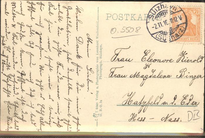 41428202 alte Postkarte Suelzhayn Kaiserblick postalisch gelaufen Erhaltung siehe scans KatCode: 11110016062005
