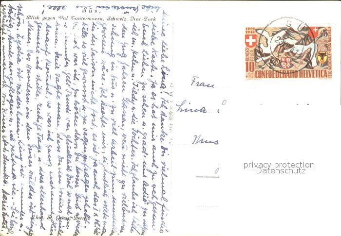 11651368 alte Postkarte Sues Engadin Schweiz Schweizer Nationalpark postalisch gelaufen Erhaltung siehe scans KatCode: 11470100335240