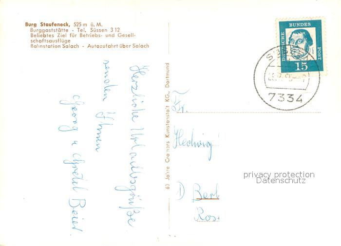 73734598 alte Postkarte Suessen Burggaststaette Staufeneck Panorama Burg postalisch gelaufen Erhaltung siehe scans [FriedD77] KatCode: 11110008117049