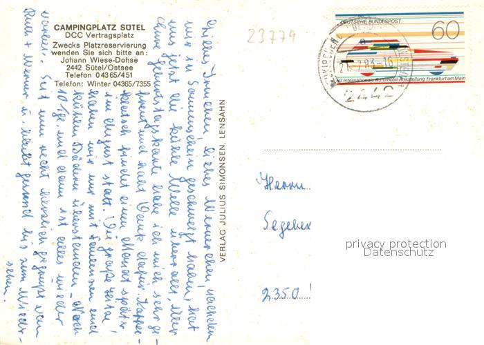 73713911 alte Postkarte Suetel Campingplatz Suetel Eingang Strand postalisch gelaufen Erhaltung siehe scans [WerneD78] KatCode: 11110001055031