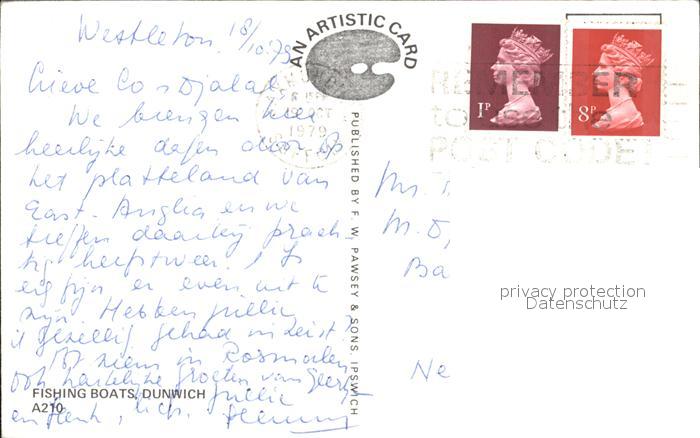 old postcard Suffolk Coastal Dunwich fishing boats postalisch gelaufen Erhaltung siehe scans