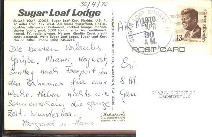 72154477 old postcard Sugar Loaf Lodge Sugar Loaf Key postalisch gelaufen Erhaltung siehe scans KatCode: 14140340000000