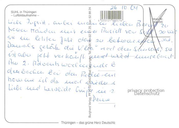 74095648 alte Postkarte SUHL Thueringen Fliegeraufnahme postalisch gelaufen Erhaltung siehe scans [WerneD78] KatCode: 11110016054000
