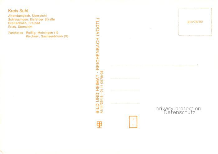 73061746 Suhl Thueringer Wald Altendambach Schleusingen Breitenbach Erlau postalisch nicht gelaufen Erhaltung siehe scans [FriedD77] KatCode: 11110016054000