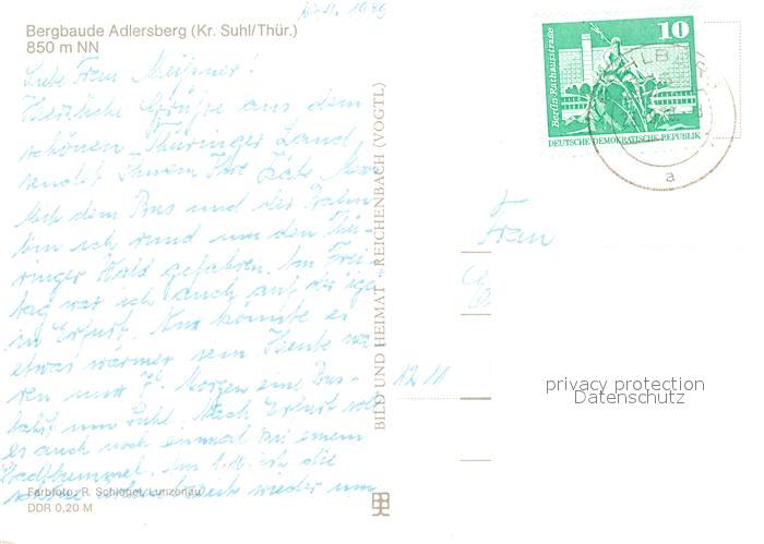 72986455 alte Postkarte Suhl Thueringer Wald Bergbaude Adlersberg postalisch gelaufen Erhaltung siehe scans [WerneD78] KatCode: 11110016054000