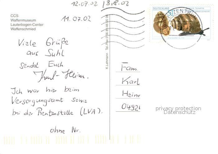 73651683 alte Postkarte Suhl Thueringer Wald CCS Waffenmuseum Lauterbogen Center Waffenschmied See postalisch gelaufen Erhaltung siehe scans [FriedD77] KatCode: 11110016054000