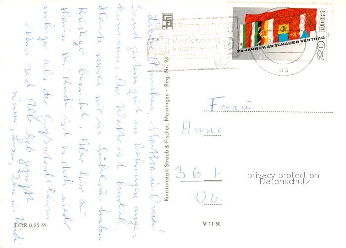73100572 alte Postkarte Suhl Thueringer Wald Centrum Warenhaus Kulturhaus 7 Oktober Haus der Gewerkschaften postalisch gelaufen Erhaltung siehe scans [KathaD81] KatCode: 11110016054000