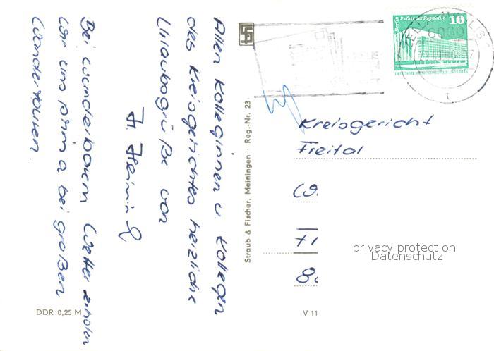 73868645 alte Postkarte Suhl Thueringer Wald Consum Warenhaus Blick zum Rathaus Steinweg Stadelstrasse postalisch gelaufen Erhaltung siehe scans [WerneD78] KatCode: 11110016054000