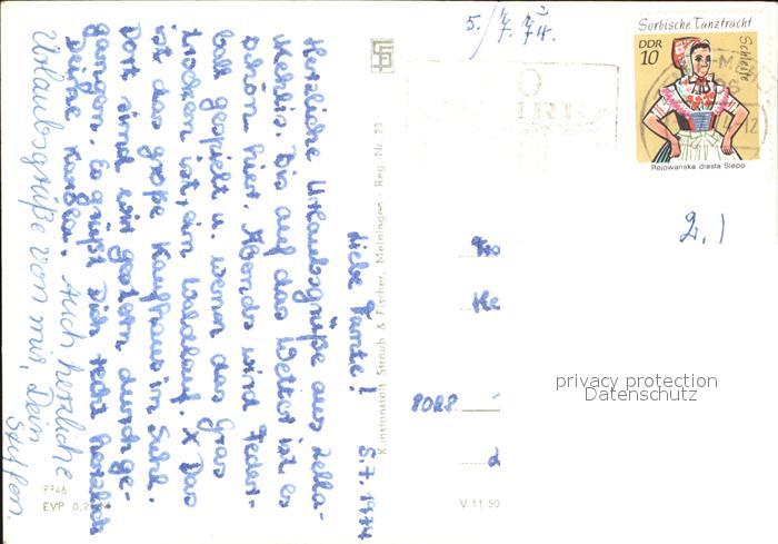 72474074 alte Postkarte Suhl Thueringer Wald Gesamtansicht Centrum Warenhaus Hotel Thueringen Tourist Kulturhaus 7. Oktober Teich Fontaene postalisch gelaufen Erhaltung siehe scans KatCode: 11110016054000