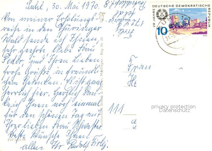 73137932 alte Postkarte Suhl Thueringer Wald Haus der Gewerkschaften Waffenmuseum postalisch gelaufen Erhaltung siehe scans [NatalD47] KatCode: 11110016054000