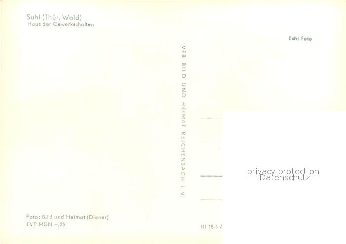 72965771 Suhl Thueringer Wald Haus der Gewerkschaften postalisch nicht gelaufen Erhaltung siehe scans [LiesaD40] KatCode: 11110016054000