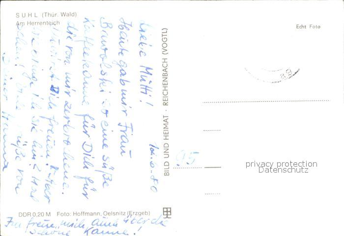 72115006 alte Postkarte Suhl Thueringer Wald Herrenteich postalisch gelaufen Erhaltung siehe scans KatCode: 11110016054000