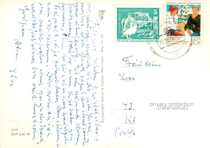 73874092 alte Postkarte Suhl Thueringer Wald HO Gaststaette Domberg Turm auf dem Domberg Panorama Blick vom Domberg postalisch gelaufen Erhaltung siehe scans [WerneD78] KatCode: 11110016054000