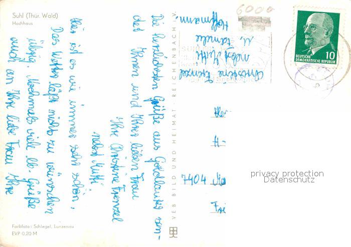 72775007 alte Postkarte Suhl Thueringer Wald Hochhaus postalisch gelaufen Erhaltung siehe scans [NatalD47] KatCode: 11110016054000