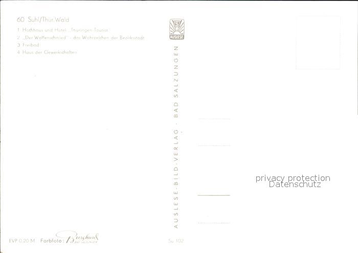 72550305 Suhl Thueringer Wald Hochhaus Hotel Thueringen Tourist Waffenschmied Denkmal postalisch nicht gelaufen Erhaltung siehe scans [KathaD79] KatCode: 11110016054000