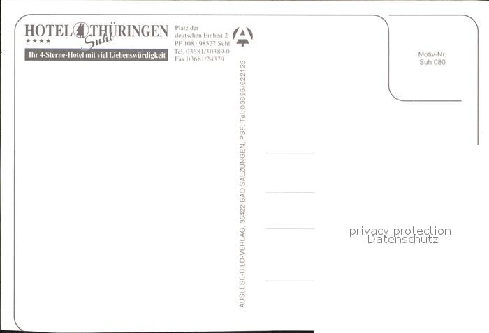 72207513 Suhl Thueringer Wald Hotel Thueringen postalisch nicht gelaufen Erhaltung siehe scans KatCode: 11110016054000