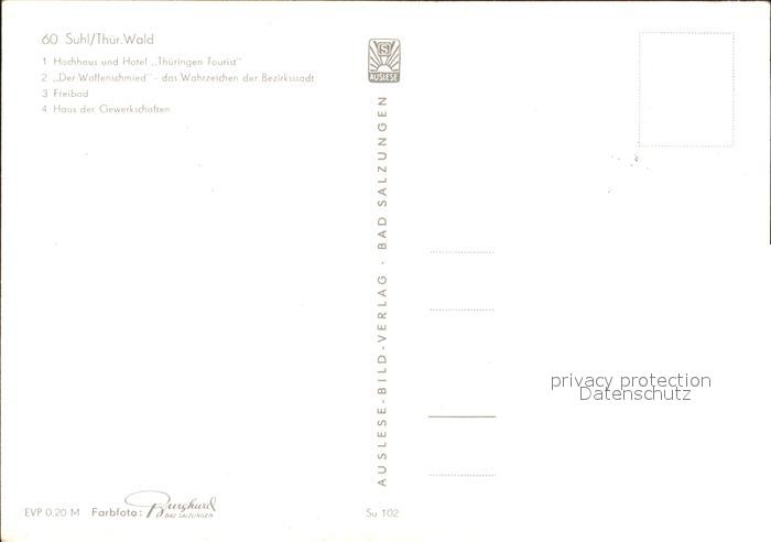 72372736 Suhl Thueringer Wald Hotel Thueringer Tourist Waffenschmied Freibad postalisch nicht gelaufen Erhaltung siehe scans KatCode: 11110016054000