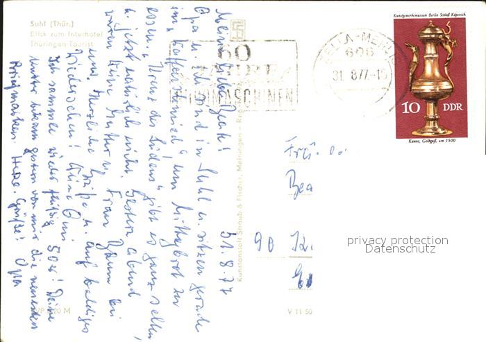 72394910 alte Postkarte Suhl Thueringer Wald Interhotel bei Nacht postalisch gelaufen Erhaltung siehe scans KatCode: 11110016054000