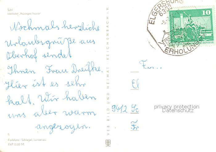 73304514 alte Postkarte Suhl Thueringer Wald Interhotel Thueringen Tourist postalisch gelaufen Erhaltung siehe scans [FriedD77] KatCode: 11110016054000