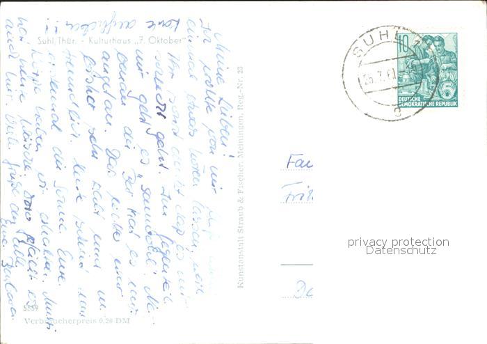 72017958 alte Postkarte Suhl Thueringer Wald Kulturhaus 7ter Oktober postalisch gelaufen Erhaltung siehe scans KatCode: 11110016054000