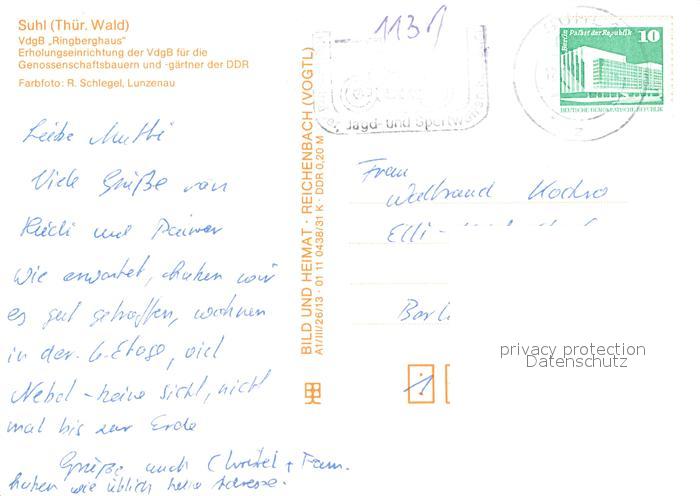 72946563 alte Postkarte Suhl Thueringer Wald Ringberghaus Erholungseinrichtung postalisch gelaufen Erhaltung siehe scans [LiesaD40] KatCode: 11110016054000
