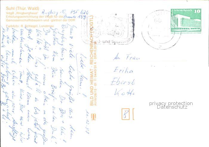 71909331 alte Postkarte Suhl Thueringer Wald Ringberghaus Erholungsheim postalisch gelaufen Erhaltung siehe scans KatCode: 11110016054000