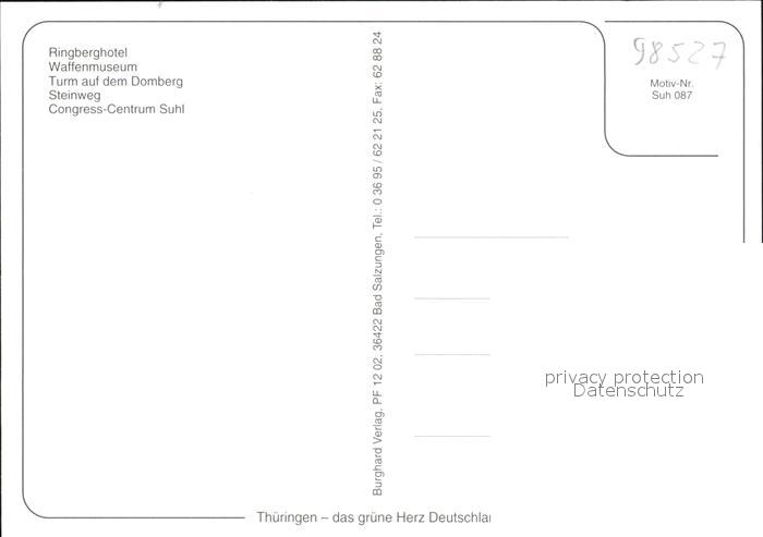 72463808 Suhl Thueringer Wald Ringberghotel Waffenmuseum Domberg Steinweg Congress-Centrum postalisch nicht gelaufen Erhaltung siehe scans KatCode: 11110016054000