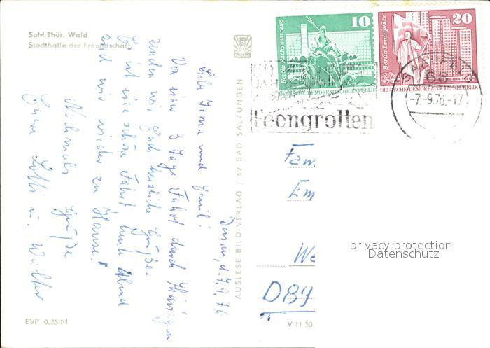 72080093 alte Postkarte Suhl Thueringer Wald Stadthalle der Freundschaft postalisch gelaufen Erhaltung siehe scans KatCode: 11110016054000