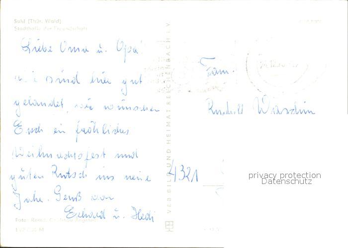 72119118 alte Postkarte Suhl Thueringer Wald Stadthalle der Freundschaft postalisch gelaufen Erhaltung siehe scans KatCode: 11110016054000