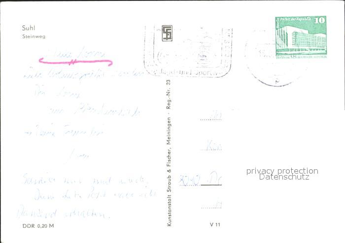 72134988 alte Postkarte Suhl Thueringer Wald Steinweg postalisch gelaufen Erhaltung siehe scans KatCode: 11110016054000
