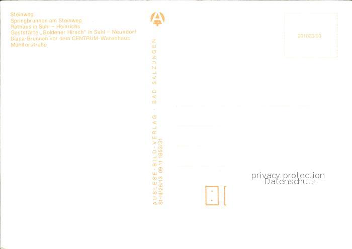 72416218 Suhl Thueringer Wald Steinweg Springbrunnen Rathaus Dianabrunnen Muehltorstrasse postalisch nicht gelaufen Erhaltung siehe scans KatCode: 11110016054000