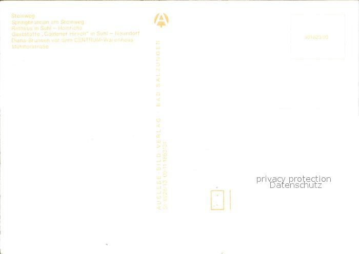 72411750 Suhl Thueringer Wald Steinweg Springbrunnen Rathaus Gaststaette Goldener Hirsch Diana Brunnen Centrum Warenhaus Muehltorstrasse postalisch nicht gelaufen Erhaltung siehe scans KatCode: 11110016054000