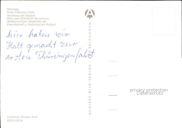 72591746 Suhl Thueringer Wald Steinweg Thaelmann Platz Hochhaus Viadukt Centrum Warenhaus Waffenmuseum Stadthalle postalisch nicht gelaufen Erhaltung siehe scans [WerneD78] KatCode: 11110016054000