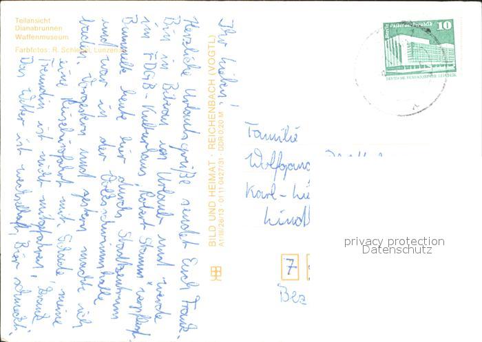72356025 alte Postkarte Suhl Thueringer Wald Teilansicht Hochhaeuser Dianabrunnen Waffenmuseum postalisch gelaufen Erhaltung siehe scans KatCode: 11110016054000