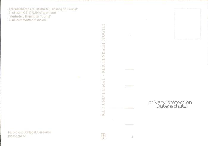 72237051 Suhl Thueringer Wald Terrassencafe am Interhotel Thueringen Tourist Centrum Warenhaus Waffenmuseum Wappen postalisch nicht gelaufen Erhaltung siehe scans KatCode: 11110016054000