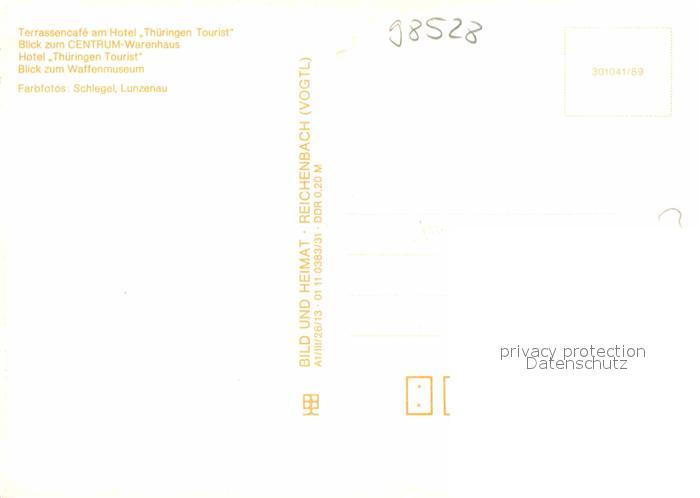 72919673 Suhl Thueringer Wald Terrassencafe Hotel Thueringen Tourist Centrum Warenhaus Waffenmuseum postalisch nicht gelaufen Erhaltung siehe scans [FriedD77] KatCode: 11110016054000