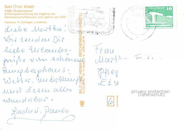 72783266 alte Postkarte Suhl Thueringer Wald VdgB Ringberghaus Erholungseinrichtung postalisch gelaufen Erhaltung siehe scans [FriedD77] KatCode: 11110016054000