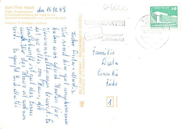 73943478 alte Postkarte Suhl Thueringer Wald VdgB Ringberghaus Erholungsheim der VdGB postalisch gelaufen Erhaltung siehe scans [WerneD78] KatCode: 11110016054000