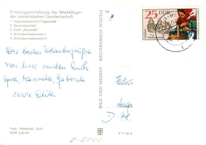 73924069 alte Postkarte Suhl Thueringer Wald VdgB Ringberghaus Tagesrestaurant Gesamt Cafe Aussicht Urlauberrestaurants I und II postalisch gelaufen Erhaltung siehe scans [FriedD77] KatCode: 11110016054000