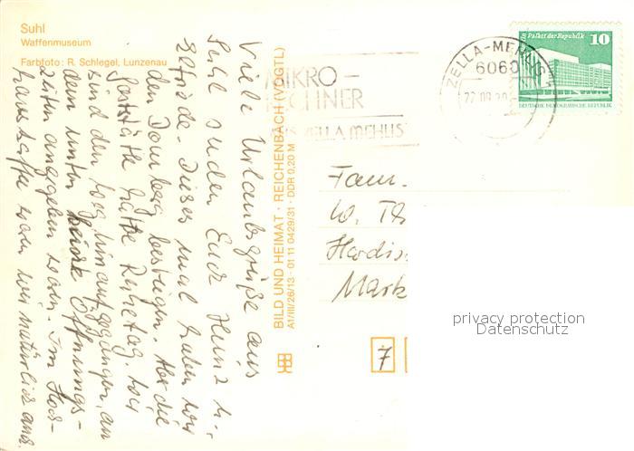 73169208 alte Postkarte Suhl Thueringer Wald Waffenmuseum postalisch gelaufen Erhaltung siehe scans [KathaD81] KatCode: 11110016054000